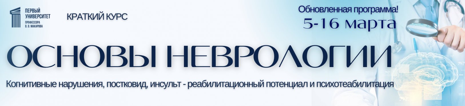 Основы неврологии. Когнитивные нарушения, постковид, инсульт. 5-16 марта.