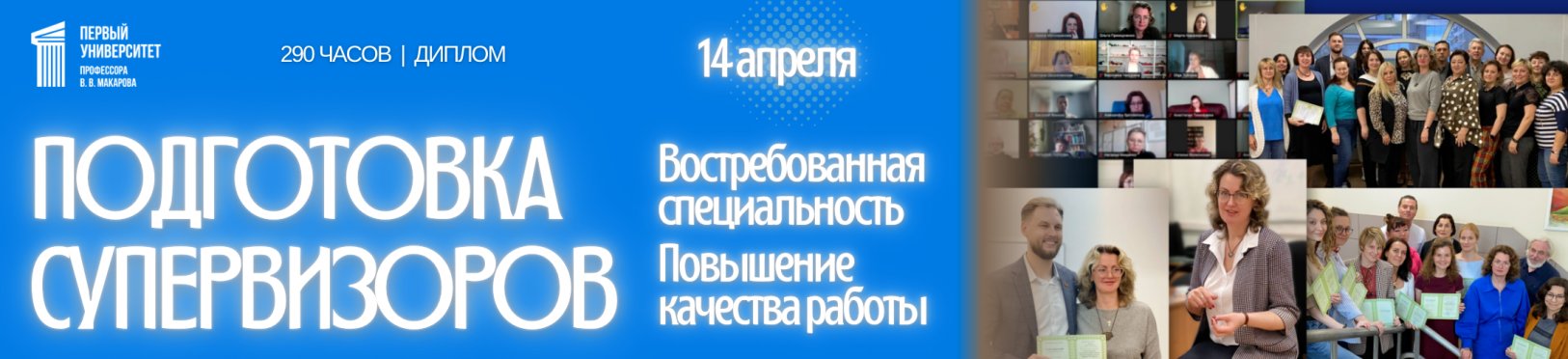 «Первый университет профессора В.В. Макарова» — главный образовательный портал ОППЛ — приглашает вас пройти обучение в рамках программы профессиональной переподготовки супервизоров